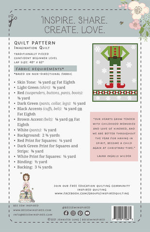 Get ready to celebrate the holidays and snuggle under this quilt watching Christmas movies alongside the stockings hung on the fireplace! When the recipient lays under this quilt, they become the Elf. This quilt is part of the Bee Sew Inspired Imagination Quilt Pattern Series. Quilt patterns that empower and inspire the next generation. Traditionally Pieced.