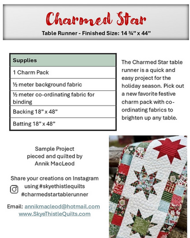 The Charmed Star table runner is a quick and easy project. Pick out a new favourite charm pack with co-ordinating fabrics to brighten up any table.