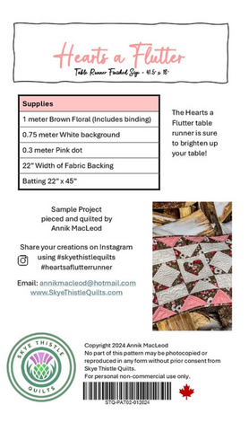 The Hearts a Flutter Table runner is sure to brighten up your table! It's versatility can be used for Valentines Day, Mother's Day or for that special someone you love!