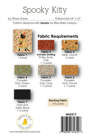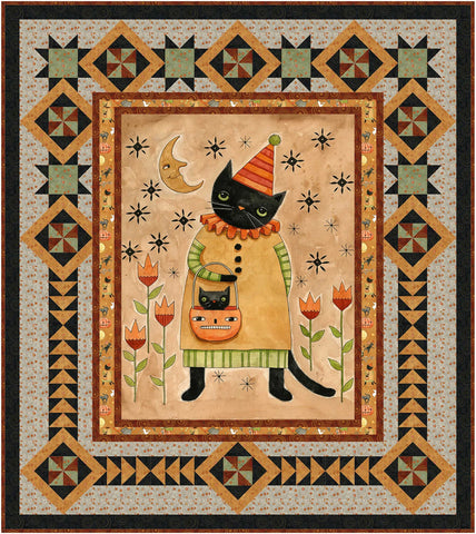 Add a dash of whimsy and a whole lot of charm to your autumn décor with the Spooky Kitty quilt! Created using the delightful Spooky fabric line by Riley Blake Designs, this quilt features an adorable center panel showcasing a playful Halloween kitty, perfectly framed by a medley of fun and festive quilt blocks. The design highlights the warm, cozy tones of autumn—pumpkin oranges, ghostly greys, rich blacks and greens—all brought together in a layout that's as whimsical as it is heartwarming. Whether draped over a couch or hung as a seasonal wall display, Spooky Kitty adds a playful and stylish touch to your Halloween and fall celebrations.